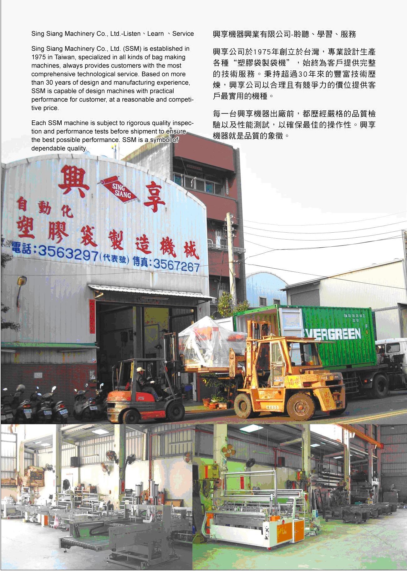 興享機器興業有限公司是一家從事塑膠薄膜制袋機研發設計製造銷售的專業公司,產品以“穩定、可靠、高效”見長;公司也是以