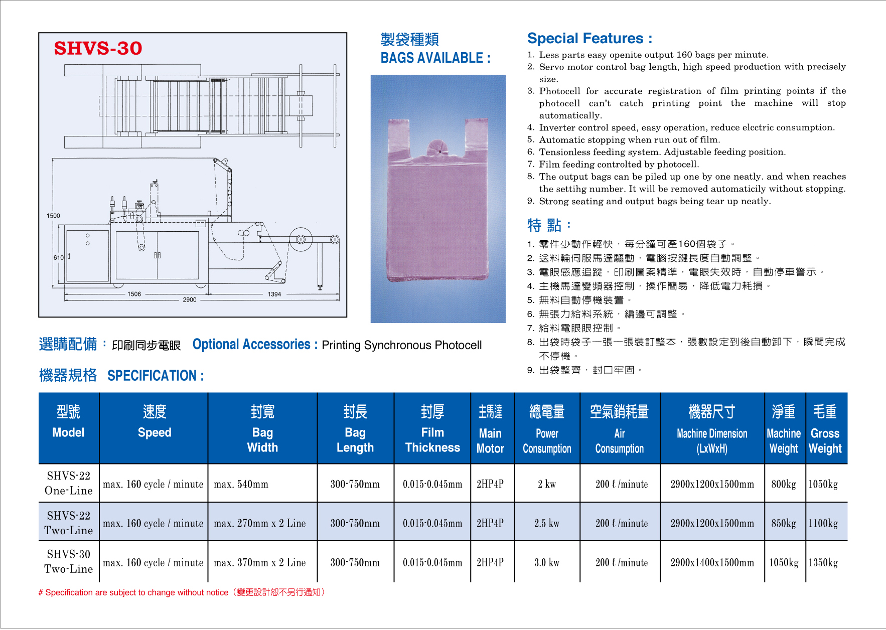 SHVS-30 Semi Automatic T-shirt Bag Machine Single Servo Dual Printing Sensor